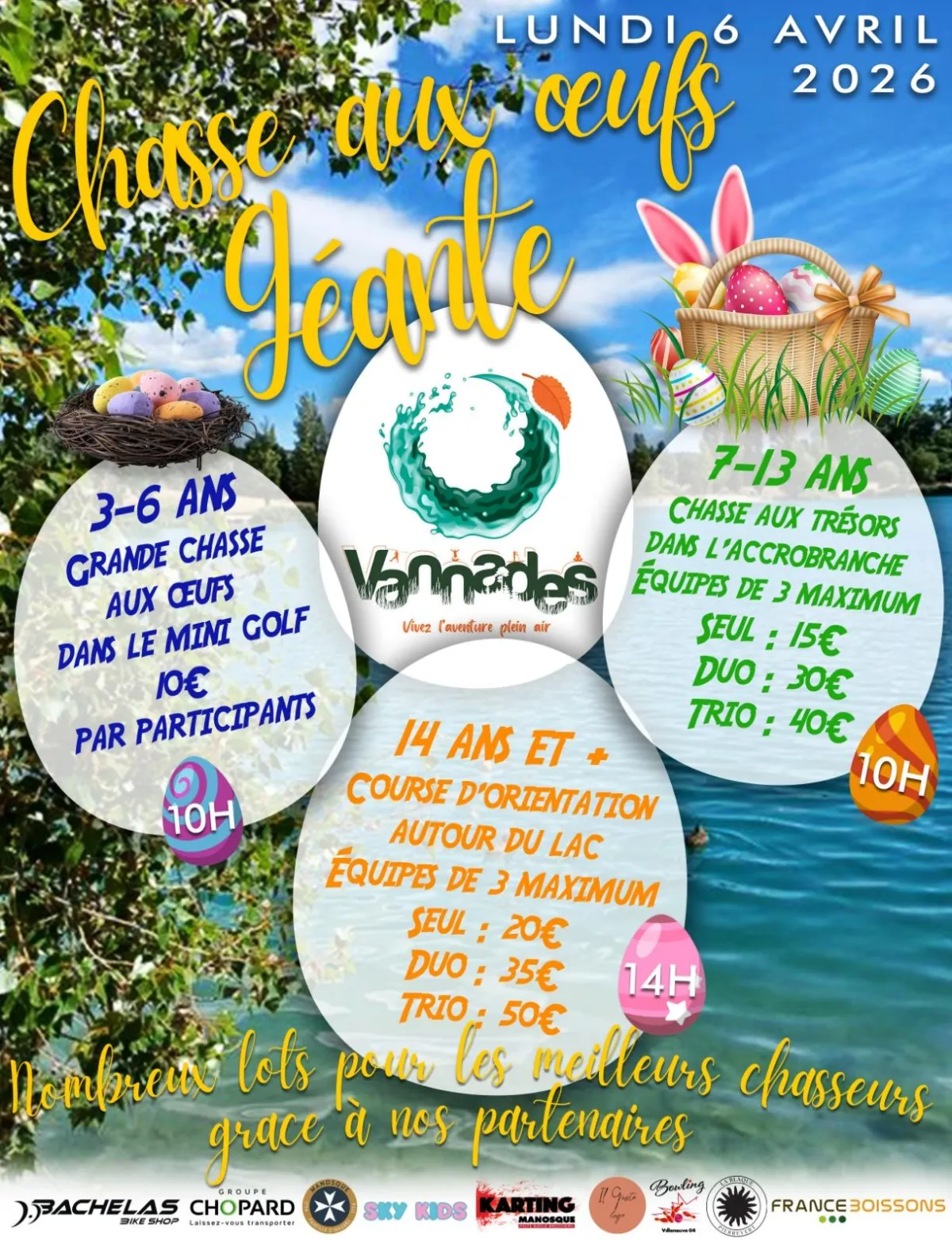 Situé en pleine nature autour du lac, cet événement de Pâques est idéal pour une sortie en famille, entre amis ou en équipe.